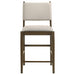 This counter-height dining chair combines modern design with elegant craftsmanship, making it a perfect addition to casual dining spaces. Upholstered in soft light tan fabric, it features foam-padded seating and a wrapped backrest with unique brown tie accents for a sophisticated touch. Tapered legs in a rich brown wood finish provide stability and complement the overall aesthetic. Constructed from rubberwood, engineered wood, fabric, and foam, this chair offers comfort and durability for everyday dining or entertaining. Key Features: • Counter-height chair with a wrapped backrest and brown tie accents for a stylish detail • Upholstered in light tan fabric for a soft, versatile, and modern look • Foam-padded seat and backrest ensure comfort during extended seating • Tapered legs in a brown wood finish provide stability and timeless elegance • Built from rubberwood, engineered wood, fabric, and foam for lasting quality • Perfect for transitional or contemporary counter-height dining spaces