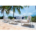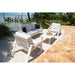Experience the beauty of the Mediterranean with the Panama Jack Mykonos 4-Piece Seating Set. Part of the Mykonos seating collection, this set includes a sofa, two lounge chairs, and a coffee table, all crafted from bright white aluminum frames that evoke the stunning Greek isles. The sleek lines and angles on the frames offer a modern and sophisticated touch to any outdoor space, while the plush cushions provide a serene and tranquil spot for lounging under clear blue skies. Customize your Mykonos Seating Set with one of our many Sunbrella outdoor fabric options to add your personal touch to this stylish collection. Whether you're hosting a summer barbecue or lounging with a good book, the Panama Jack Mykonos 4-Piece Seating Set is the perfect addition to your outdoor oasis.