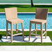This Panama Jack Austin 3-Piece Bar Set with Glass features a sophisticated yet durable design, perfect for outdoor entertaining. Crafted from commercial-quality synthetic fibers and aluminum, this set is built to withstand the elements while maintaining a stylish appearance. The bar includes a sleek tempered glass top, offering a refined surface for serving drinks and food. The two barstools provide sturdy yet comfortable seating, featuring footrests for added support. The lightweight design makes the set easy to reposition, ideal for patios, poolside spaces, or outdoor bars. Low-maintenance and weather-resistant, this set blends function and elegance for effortless outdoor entertaining.