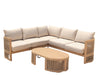 Create a luxurious outdoor lounging experience with the Panama Jack Cabo 3-Piece Sectional Seating Set. This set includes a stylish sofa, a right-facing sofa, and a sleek coffee table, all featuring durable aluminum frames wrapped in premium Acacia wood for a natural, timeless finish. The sofas are accented with elegant tan rope detailing, offering a modern aesthetic that blends beautifully with any outdoor space. The plush, weather-resistant cushions provide the perfect balance of comfort and durability, while the slatted Acacia wood coffee table completes the set, providing ample space for entertaining or relaxing. Perfect for patios, gardens, or poolside, this sectional set is designed to elevate your outdoor living experience.