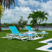 Enjoy ultimate relaxation with the Panama Jack Abaco 3-Piece Chaise Lounge Set, perfect for transforming your poolside or patio into a tranquil retreat. This set includes two comfortable chaise lounges made from durable polypropylene plastic, ensuring weather resistance for long-lasting outdoor use. The breathable teal sling seats provide both style and comfort, while the adjustable backrests allow for customized lounging positions. Completing the set is a sleek and practical matching side table, ideal for holding drinks, snacks, or essentials. Whether you're sunbathing or simply unwinding outdoors, the Abaco Chaise Lounge Set offers the perfect blend of style and functionality for your outdoor space.
