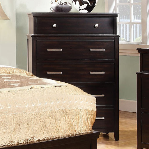 FOA EastUpdate your bedroom with sleek contemporary styling and design. The bed features a padded leatherette headboard. Matching chest, dresser, night sta...