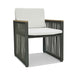 The Horizon 5-Piece Dining Set combines sleek contemporary styling with commercial-grade durability. Featuring a matte-finished aluminum frame, slatted rope detail, and natural teak arm accents, the set includes a square dining table and four armchairs with plush Sunbrella cushions—perfect for stylish seaside meals or rooftop gatherings.