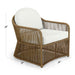 A captivating piece that effortlessly transforms any outdoor space into a stylish haven. Its broad backrests lend an intimate and unparalleled charm. The armchair features a powder-coated aluminum frame and a Ecolene Nigerian Twist weaving. A comfortable cushion is included in 5453 Sunbrella Canvas or you can choose from other available Sunbrella options. Crafted for durability, the armchair combines modern elegance with resistance against the elements. Create a personalized outdoor oasis with the Calixto Outdoor Armchair where style, comfort, and durability converge.