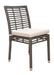 The Panama Jack Graphite Stackable Side Chair with Cushion is the perfect addition to any outdoor dining space. Made from see-through grey fiber hand-woven over aluminum frames, this chair from the Graphite collection boasts a sleek and modern look. Resistant to corrosion and scratching, this chair can withstand any weather and can be combined with any of the multiple dining tables the collection has to offer. This option includes a comfortable off-white outdoor polyester cushion or you can choose from our selection of Sunbrella outdoor fabric options for added comfort. Plus, the stackable design makes for quick and hassle-free storage.