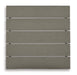 - Gray finish with textured wood look