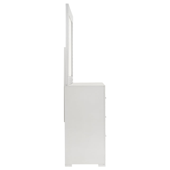 Coaster Z2 PremiumBring a touch of modern luxury to your bedroom with this dresser and mirror set. Featuring a high gloss finish and 3-dimensional diamond tile embos...