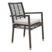 Looking for a sleek and modern addition to your outdoor dining space? The Panama Jack Graphite Stackable Arm Chair with Cushion is the perfect choice. Constructed from see-through grey fiber hand woven over aluminum frames, this armchair is resistant to corrosion and scratching, making it ideal for any outdoor setting. Choose from our off-white outdoor polyester cushion or one of many Sunbrella outdoor fabric options for added comfort. And when it's time to clean up, the stackable design makes for quick and hassle-free storage. Combine with any of the multiple dining tables from the Graphite collection to create an outdoor dining area that's perfectly suited to your needs.