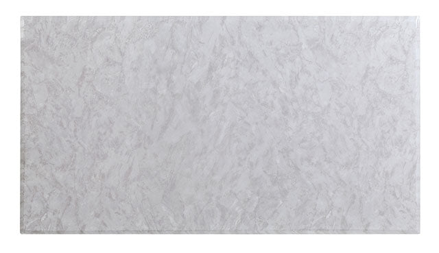 How about a modern marvel on your very own dining space? This brilliant piece features a faux marble rectangular top with beveled edges, held up by two curved pedestals finished in chrome. The matching chairs share the same shape and finish as the table, with seats upholstered in gray velvet fabric. With their unique backs featuring deep button tufting and welt-trimmed edges, they complete this sleek and exquisite set.